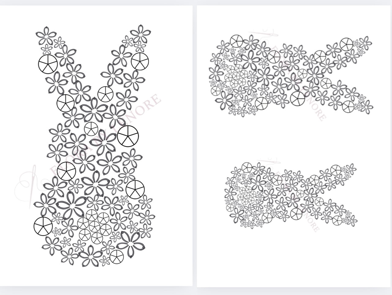 • Printable "Blossom Bunny" pattern (PDF); a total of 2 pages (3 Patterns: Large, Medium and Small) and Written Stitch Guide with all of my go to recommended Stitches to use for this design.