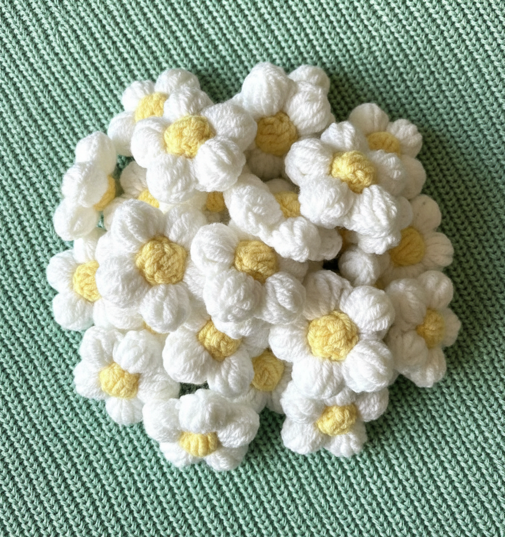 Handmade crochet embellishments you can easily sew onto your knits or embroidery for an instant, handcrafted touch. Simply attach them with a needle and thread to any Elora By Lenore blank; they’re lightweight, soft and add the sweetest detail.