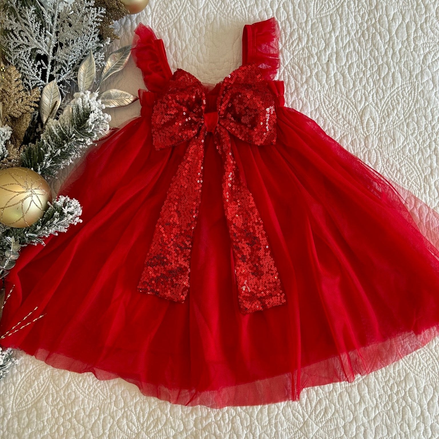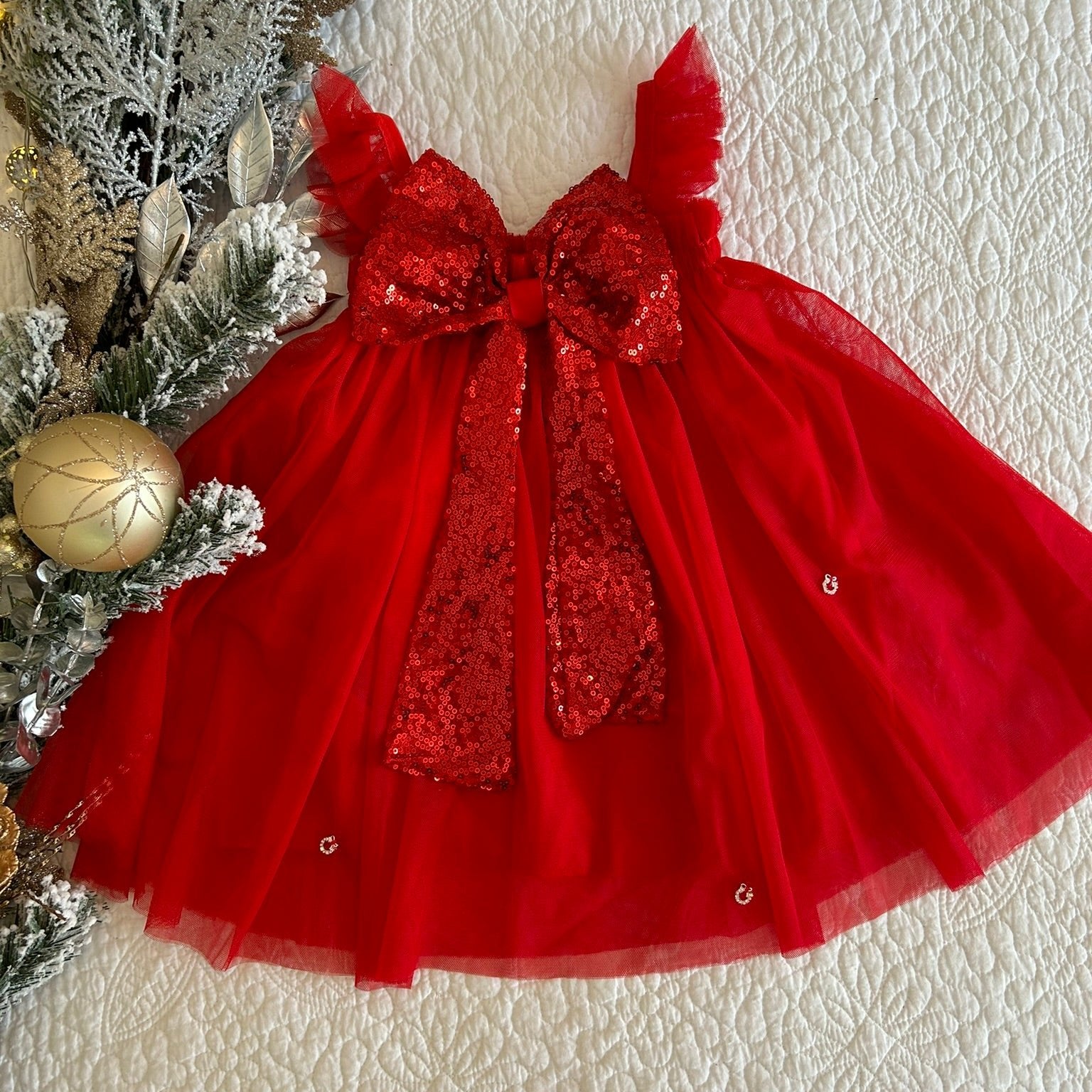 This dress is so sweet! It features a large sparkling bow at the back which your little girl will simply love. Made for anyone you know who would love to feel like a princess this Christmas!