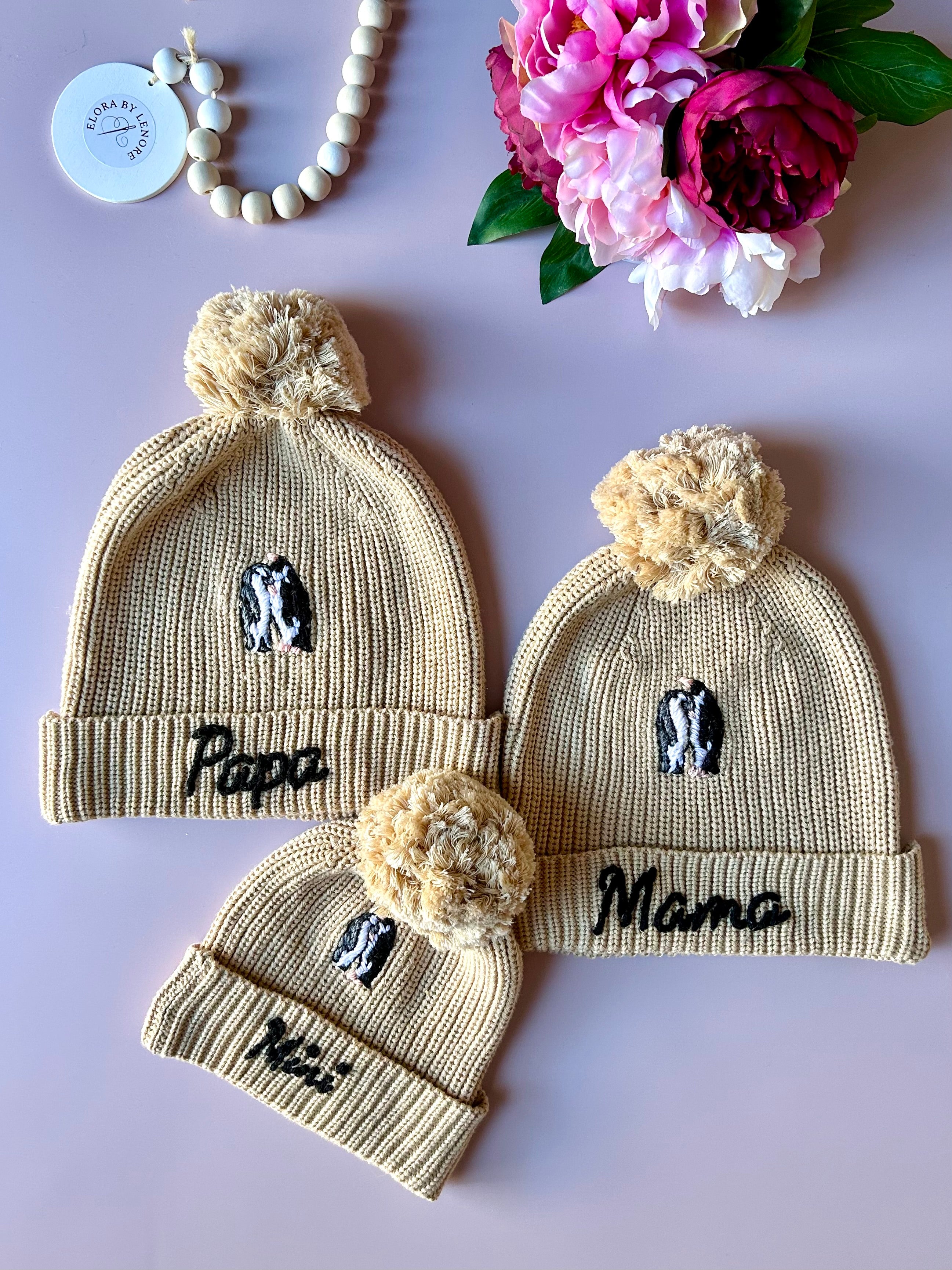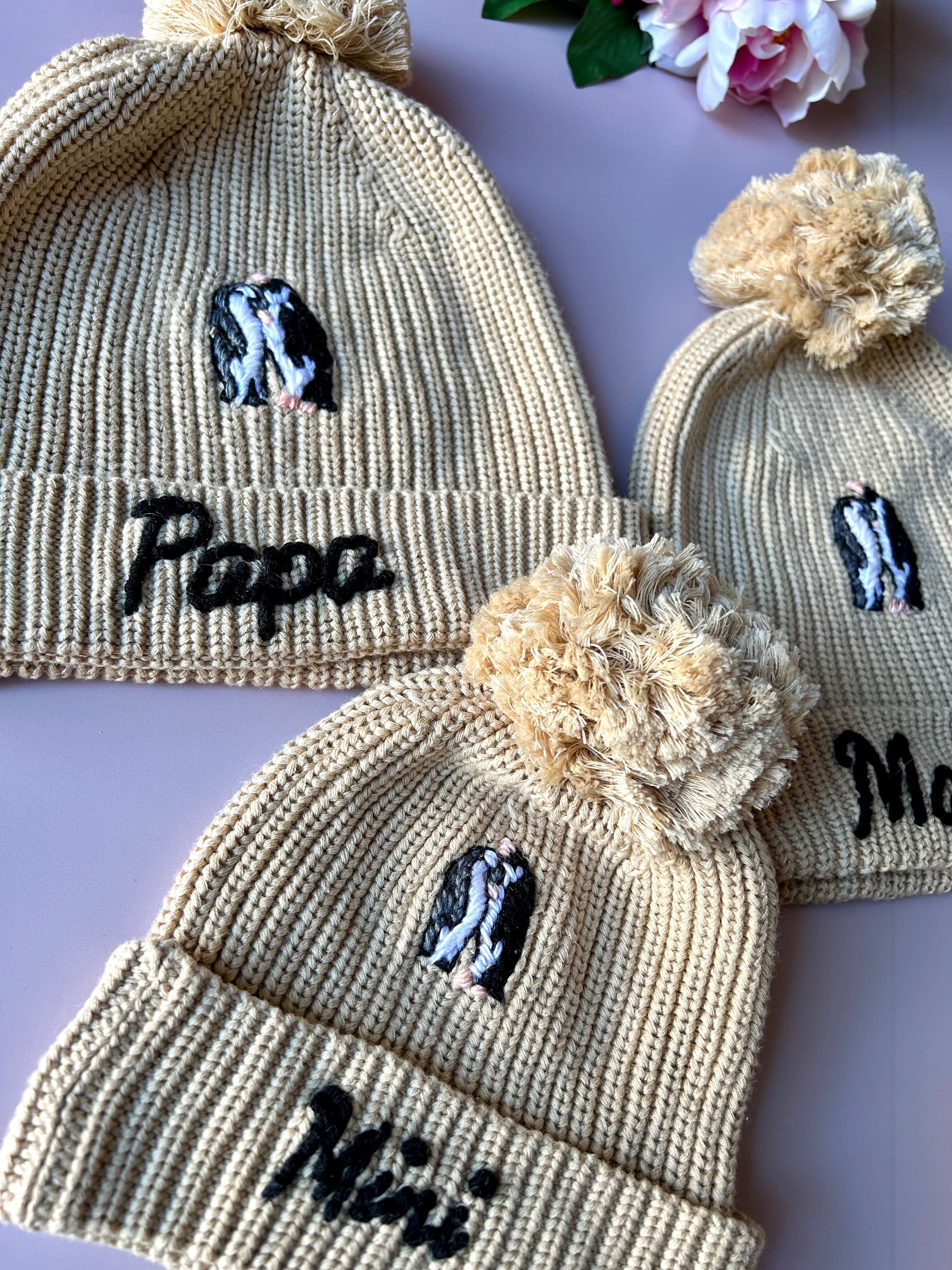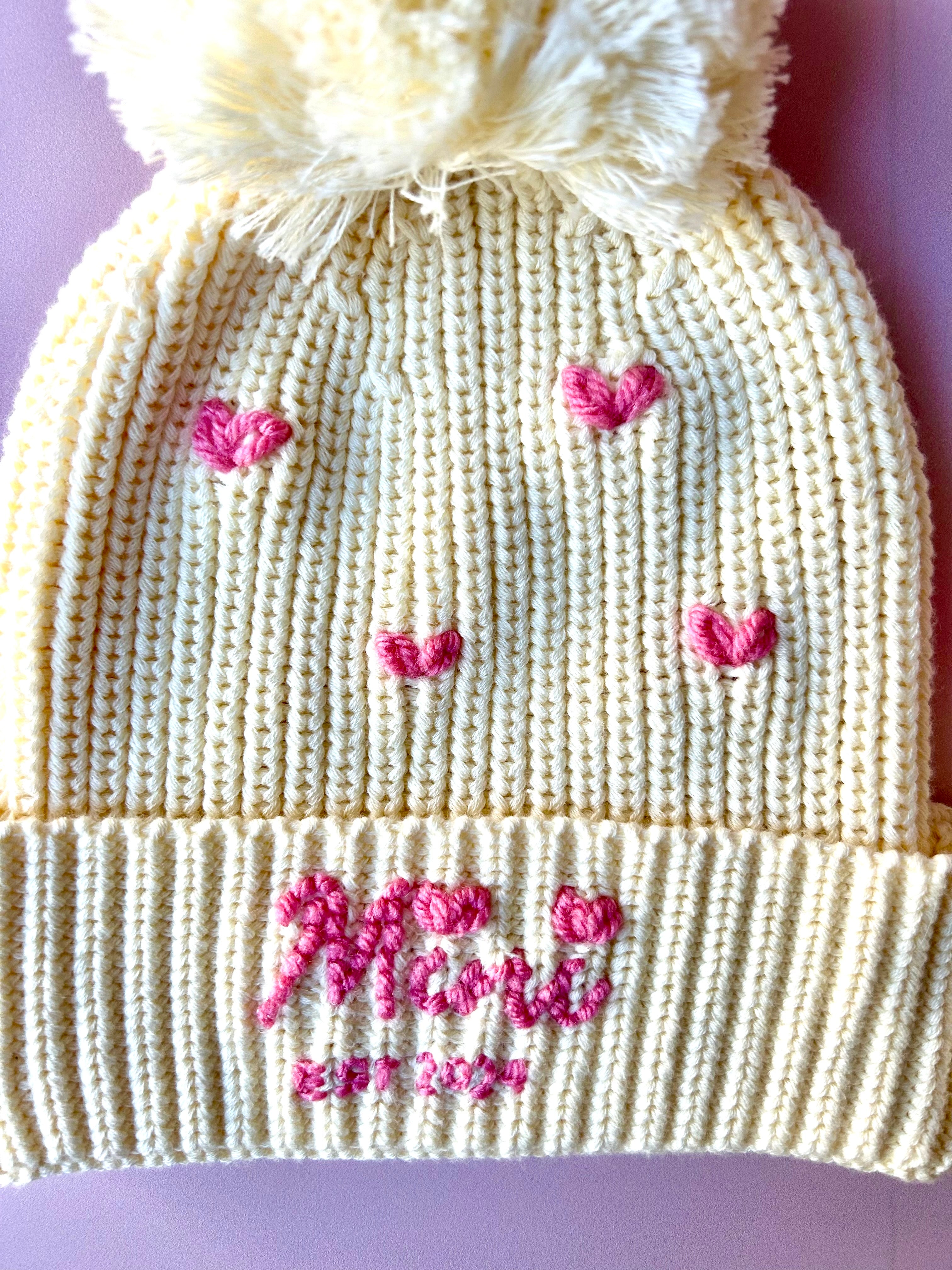 How it works; select your size amd colour beanie, choose the design or add on pieces you’d like (these prices vary depending on complexity), tell me any specific visions you have and I’ll stitch them into life!