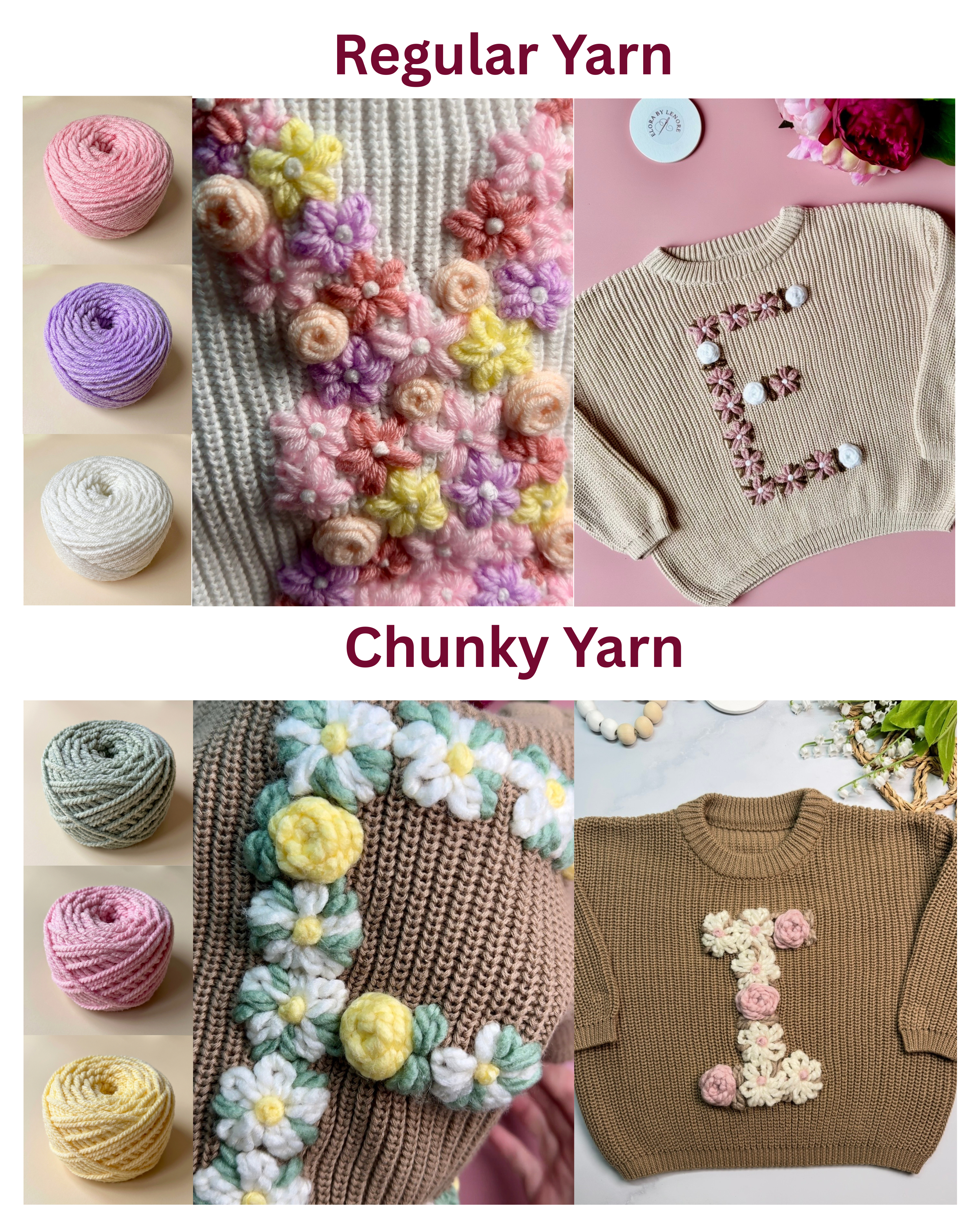 - Yarn; over 50 metres (regular) or 30 metres (chunky)