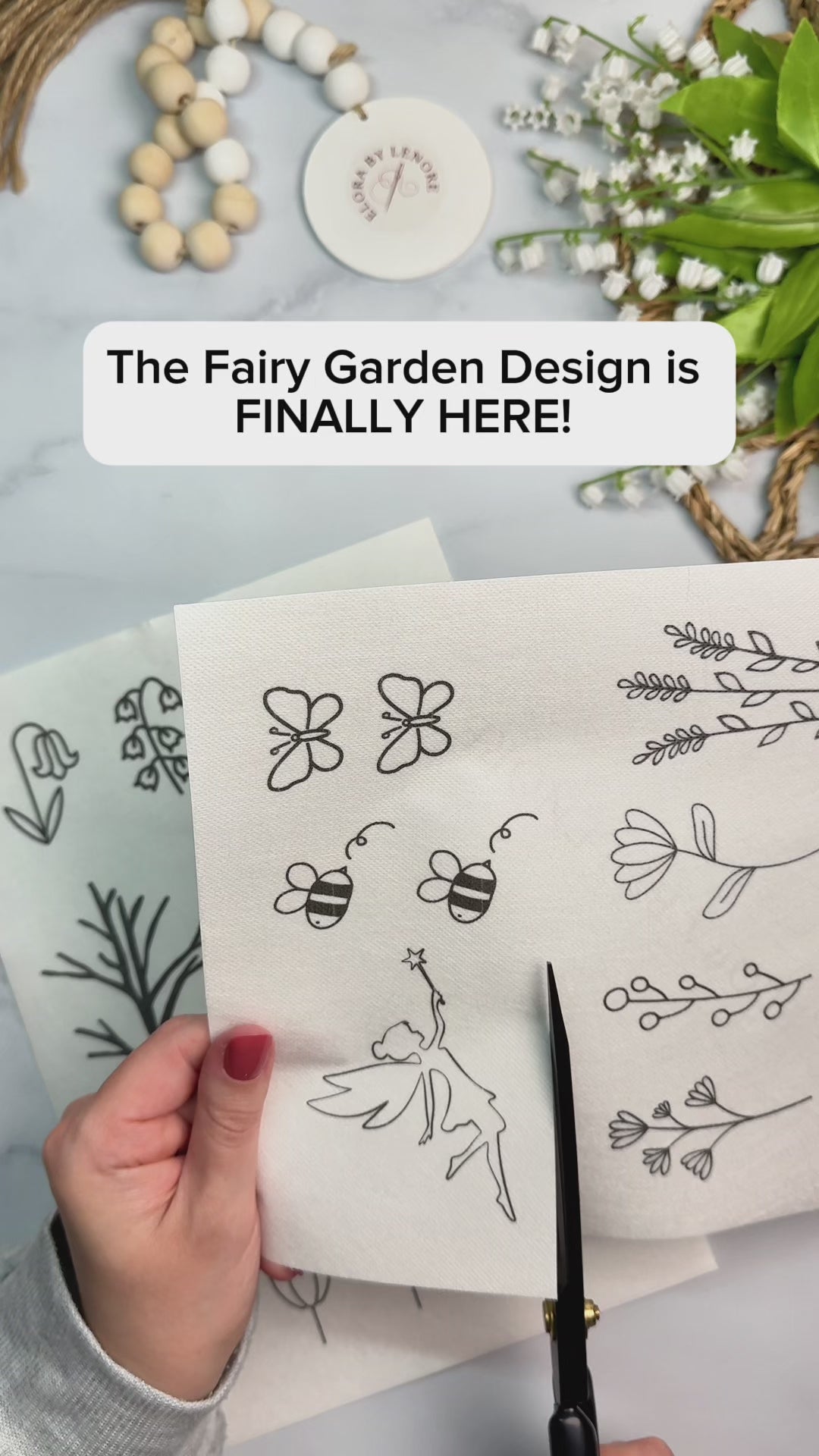 • Printable “Fairy Garden” Stick & Stitch pattern (3 full pages PDF) with multiple fairies, florals, and garden elements designed to be cut out and arranged as desired
