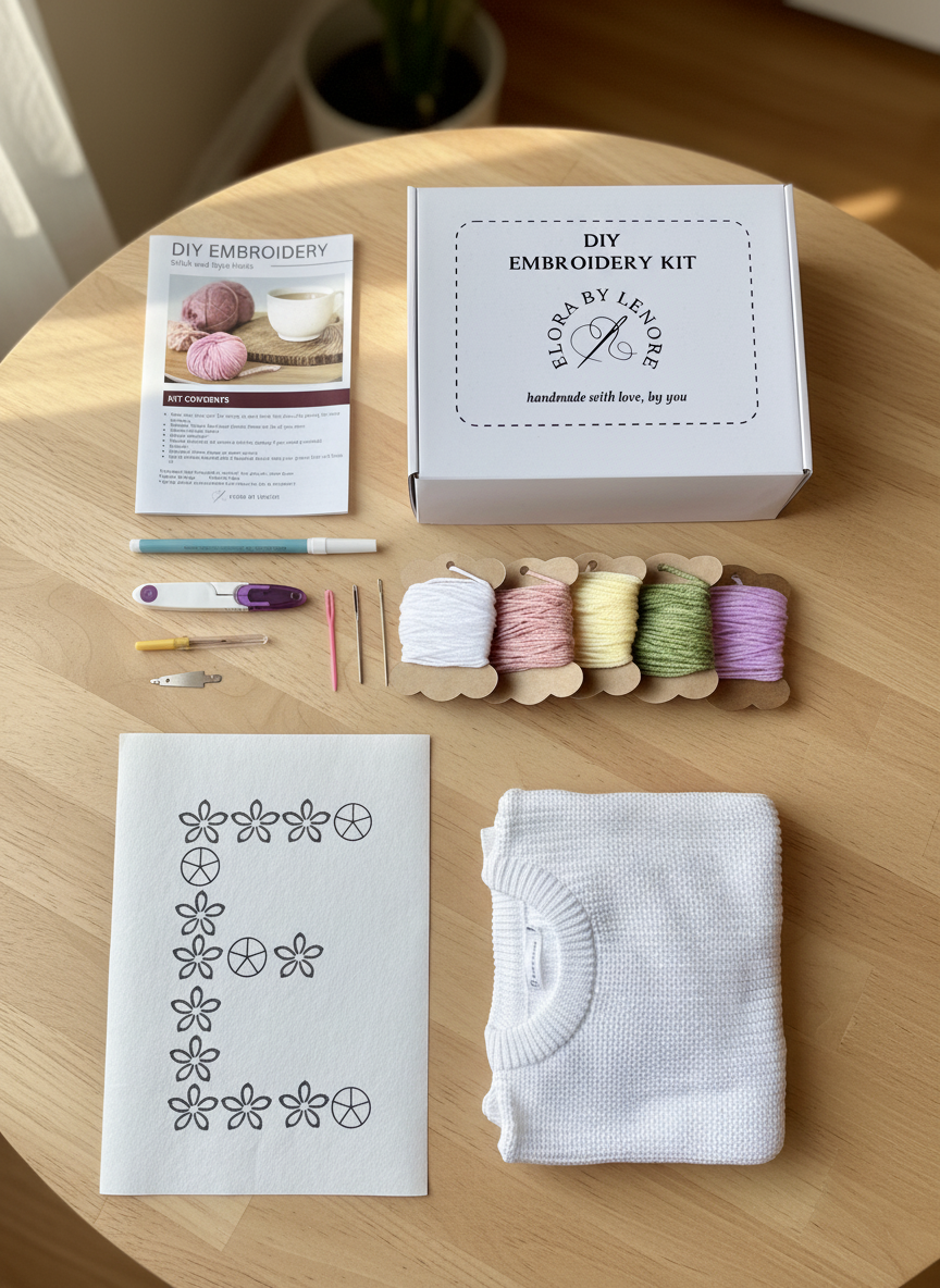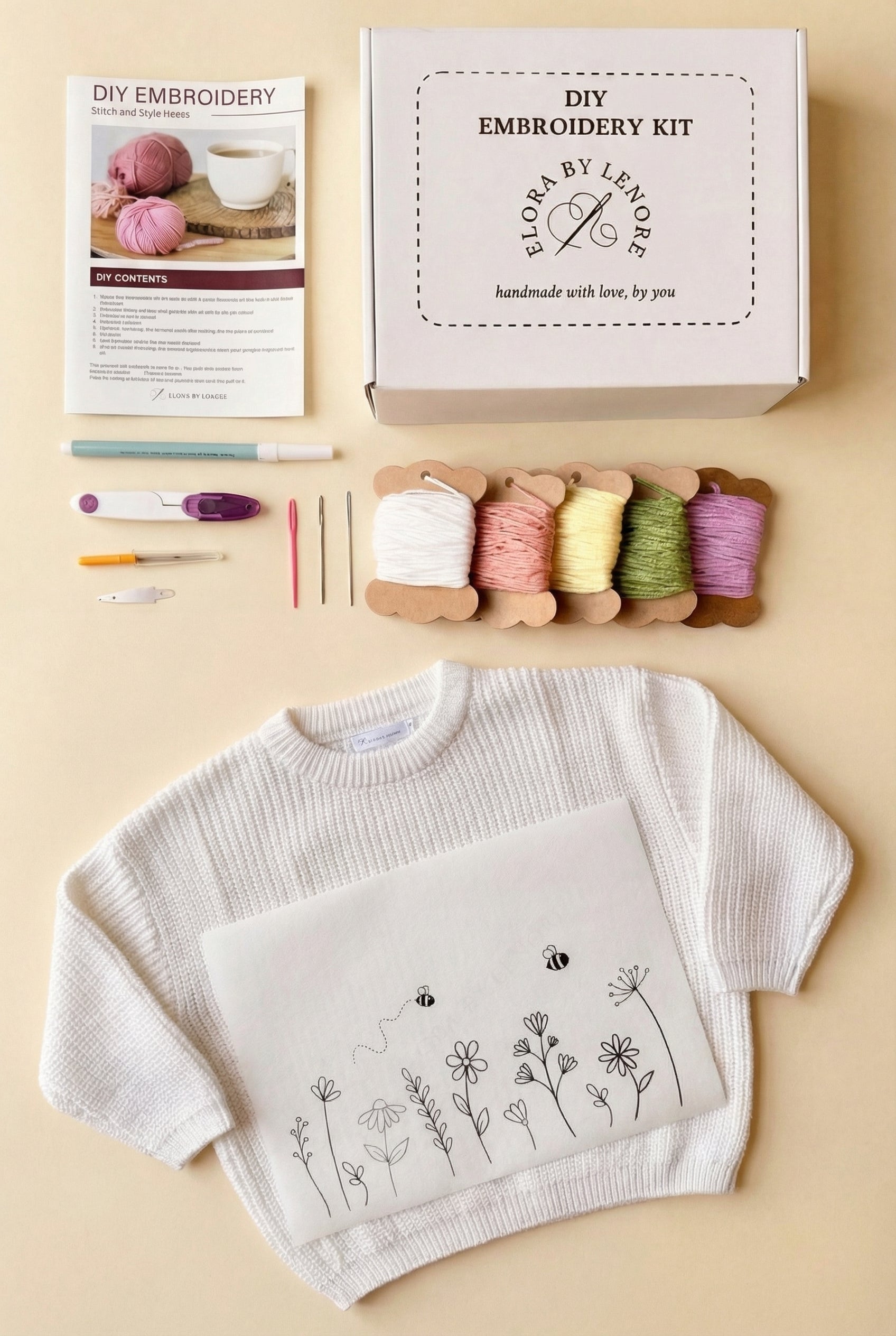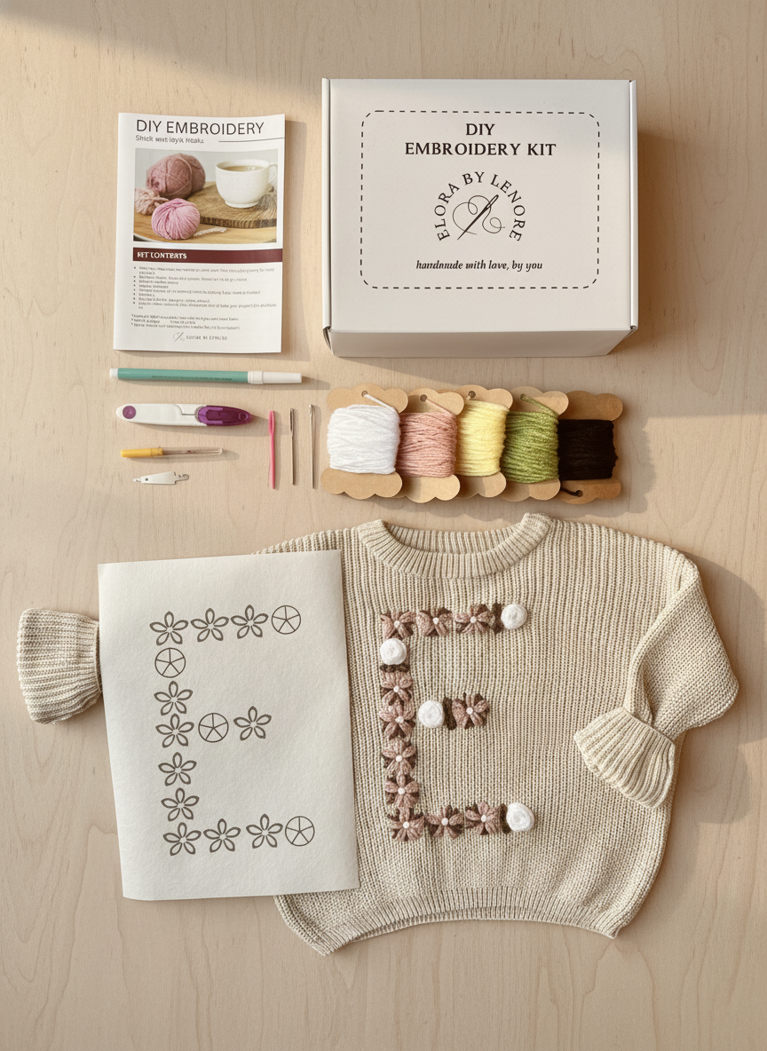 This DIY kit includes everything you need to customise your own 100% Cotton jumper, so beginners and experienced stitchers can enjoy creating something beautiful without the stress.